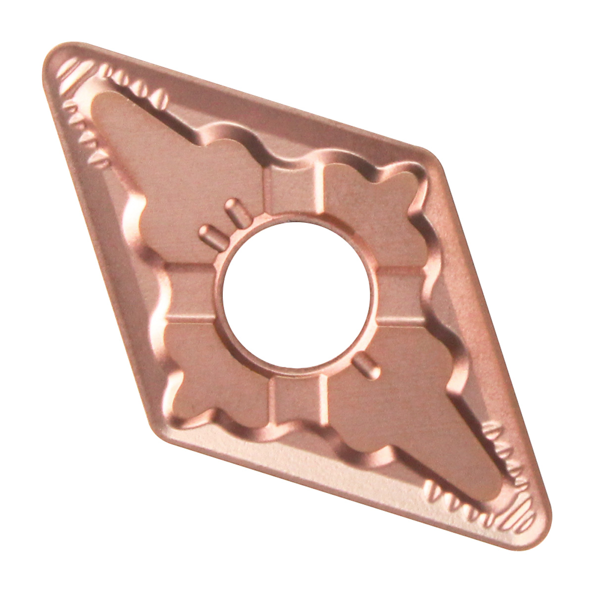 • La geometría única del rompevirutas con bordes afilados y gran ángulo de desprendimiento garantiza una acción de corte libre en una amplia gama de condiciones de corte.